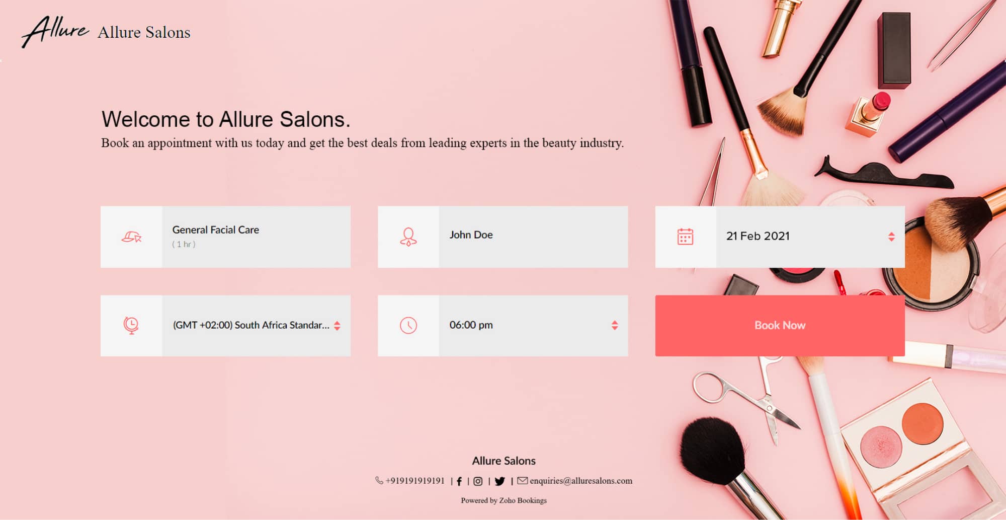 With Zoho Bookings, staff, service and workspace booking sites are available. Select a template that reflects your brand identity before embedding or mapping the booking page to your domain.
