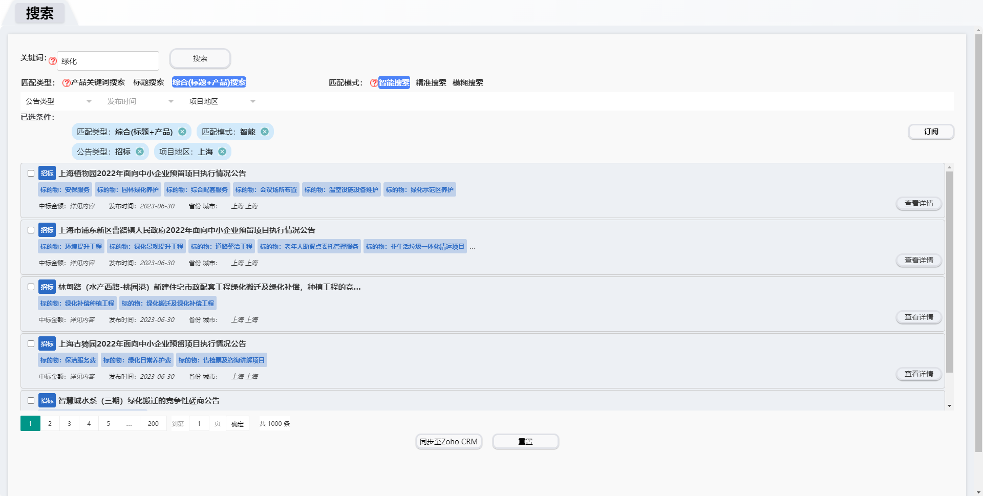 Smart Bidding System ISV relies on the Zoho CRM system combined with high-quality bidding data provided by Chinese bidding platforms to offer its customers integrated bidding services (in China only). (Here, bidding information refers to bidding data in mainland China)).